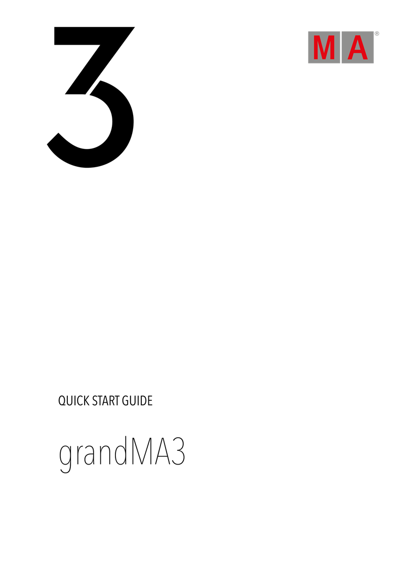 grandMA3 User Manual Publication grandMA3 Quick Start Guide Subtopics00 - Welcome01 - New Show and Setup02 - First Patch03 - First View Setup04 - Control Simple Fixtures05 - 3D Fixture Setup06 - Groups07 - Appearances08 - Scribbles09 - Macros10 - Store Cues and Use Executors11 - Add Moving Lights12 - Control Moving Lights13 - Presets14 - Phasers15 - Sequence with Multiple Cues16 - Network and How to Output DMX17 - Recipes