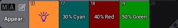The easiest way to assign the appearances to cues (or technically the cue parts) is by using the Swipey menu in the Appearance pool. If you forgot about Swipey, please revisit chapter 6.