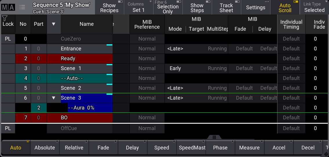 You can see that cue 3 still has the mode we specifically selected, but all the other cues use a different default MIB mode.