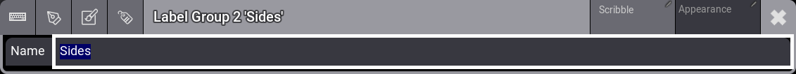 ) is the scribble icon. Clicking this opens the scribble editor at the bottom of the edit name pop-up. Creating a new scribble and applying it to the object adds the scribble to the pool so it can be used again on other objects.