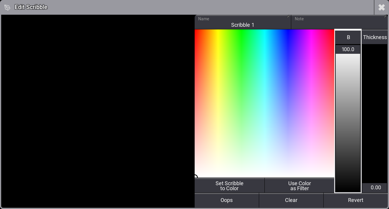 Scribbles are applied like appearances. They are mostly applied to pool objects, where appearances can also be applied to a wider range of elements such as backgrounds, windows, or even the user-defined area.