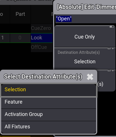 - All Fixtures: Edits will only apply to all attributes of all fixtures within the cue part.