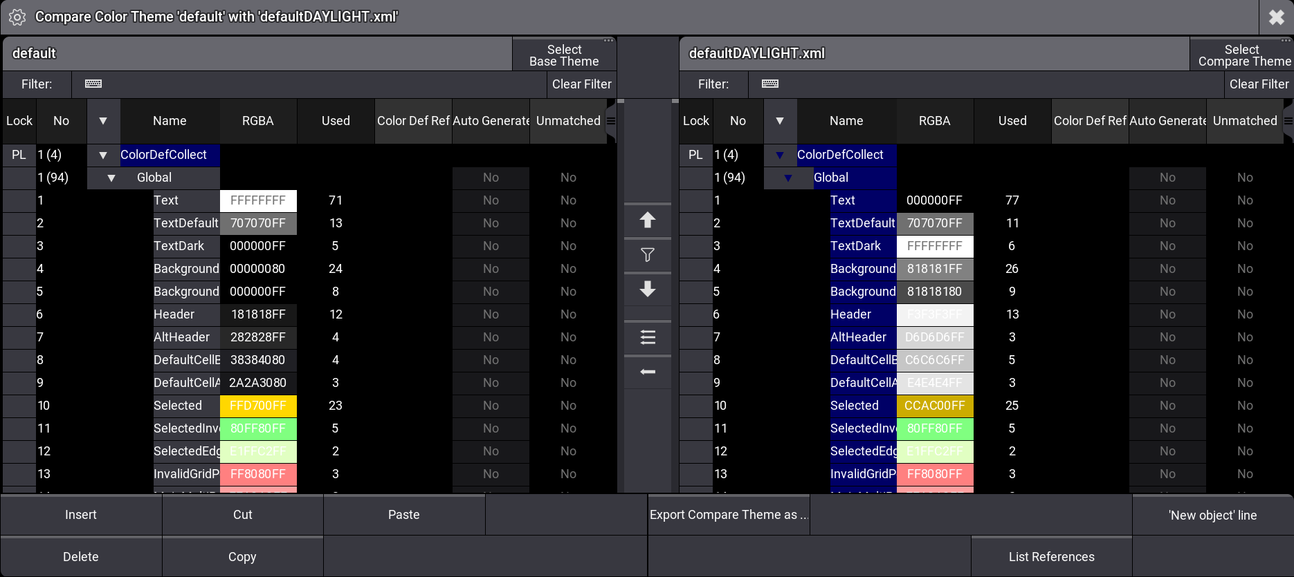 - When opening the compare tool for the first time, a import pop-up opens. Select a color theme, for example defaultDAYLIGHT, and tap Import.