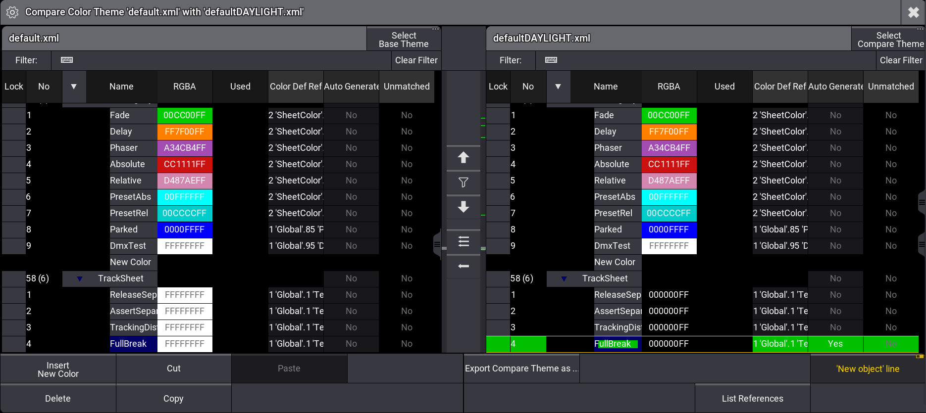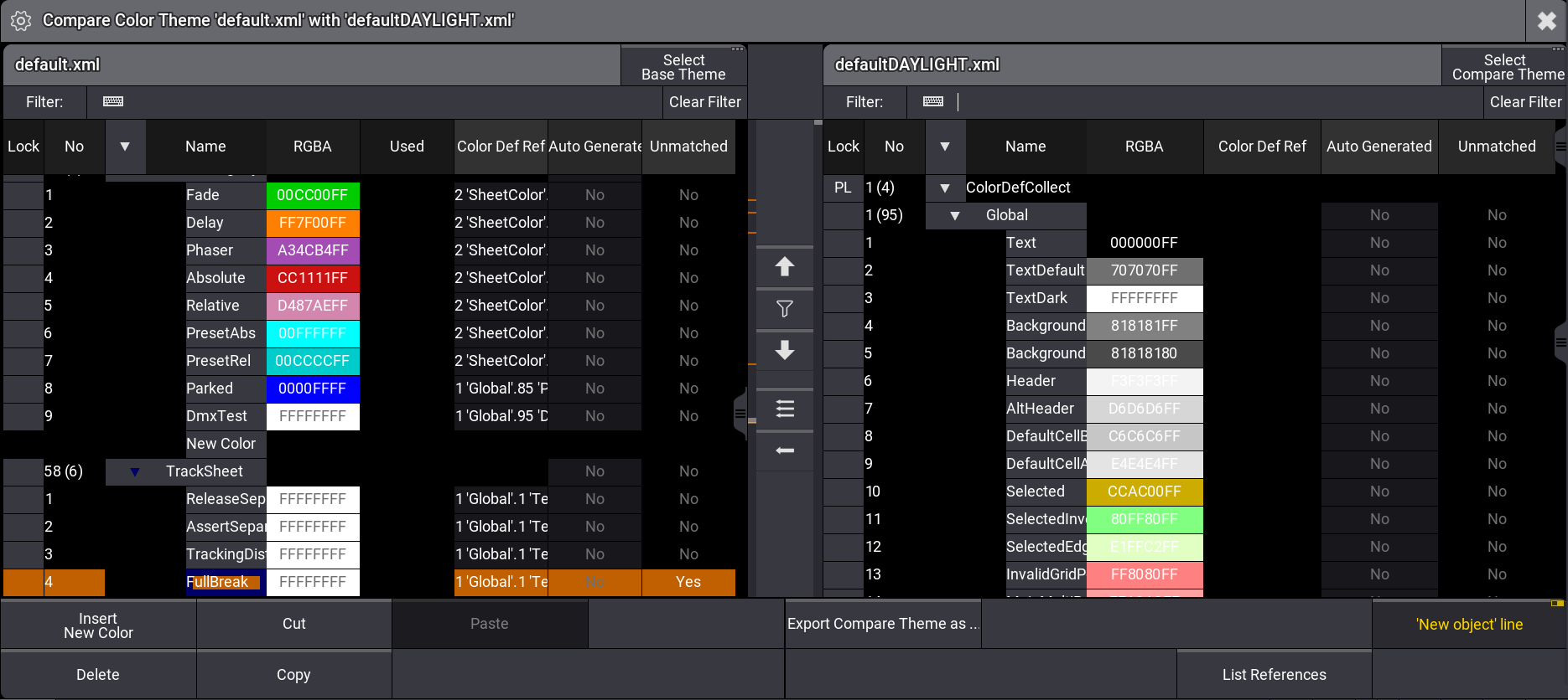 . When enabling filter, the button turns yellow and the columns names "Auto Generated" and "Unmatched" get a yellow filter icon as well: - To change RGBA values for "FullBreak", right click the color in the RGBA column. The color editor opens.