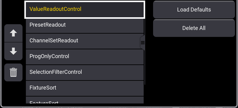 The left side lists all the active title bar buttons. The Selected button can be moved up or down using the arrow buttons on the left side. The selected button can also be deleted by tapping the